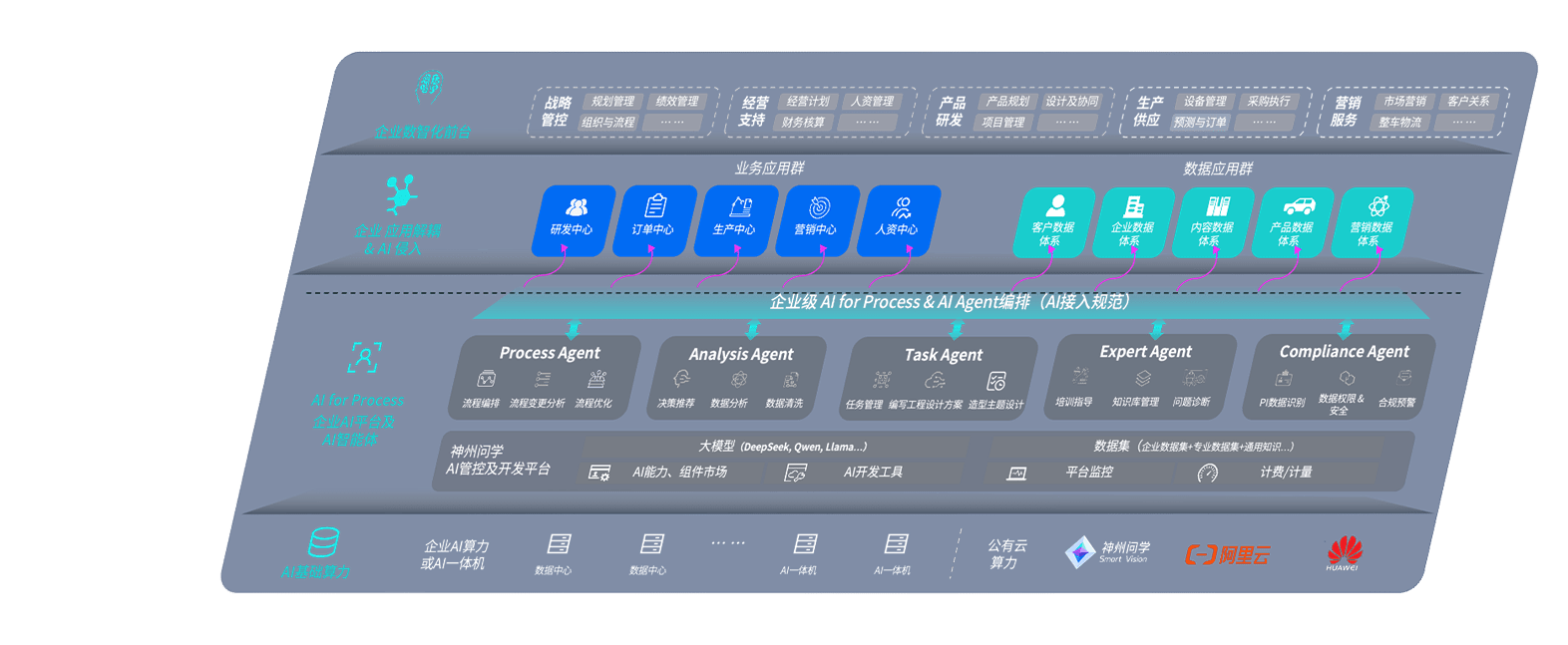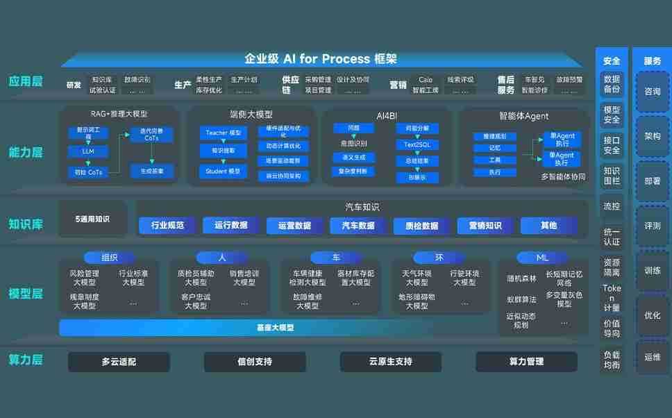 端到端的一站式AI工作空间深度融合了从企业战略规划到日常经营的全流程业务板块,,,定向解决车企内部领域多、、、部门多、、、、链条长、、、场景碎片化等难题,,支持车企快速构建以AI为核心的生产力写作体系,,,实现任务执行与AI能力的无缝集成与交互